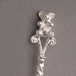 The teddy bear range of spoon-top motifs available from Vali Cohen Silver Collectables.